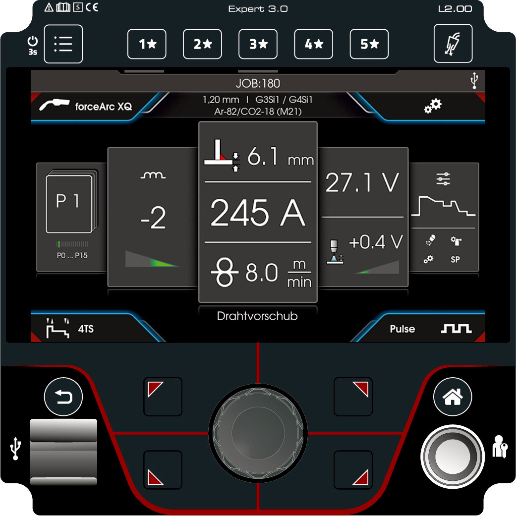 - HP-XQ-Steuerung: Alle wichtigen Einstellmöglichkeiten im direkten Zugriff, inklusive Schweißablaufschema zur einfachsten Einstellung aller Schweißparameter